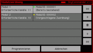 Zusätzlich wird die Liste bei der Programmierung der Module mit der Einschränkung "nur nicht zugeordnete Module" angezeigt, die über dieses Menü aufgehoben werden kann.