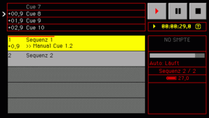 Extern Synchronisierte Show, kein Timecode-Empfang ("Notstart"). Gleichzeitig läuft eine manuelle Sequenz.